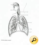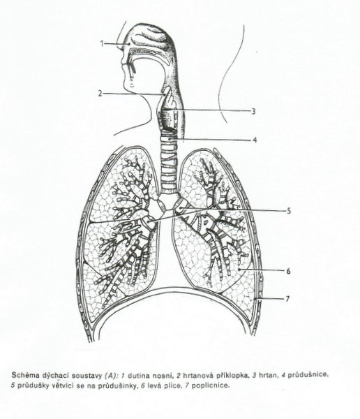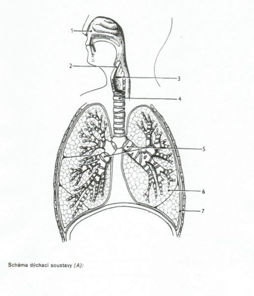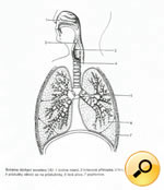 Poznámka: S žáky nejprve rozvineme diskuzi o tom, proč vlastně potřebujeme dýchat. Necháme je diskutovat o poznatcích, které již získali v hodinách přírodopisu a v neposlední řadě jim s pomocí názorného obrázku dechového ústrojí doplníme informace, které žáci ještě nevěděli nebo zapomněli. Nejprve doporučujeme využít přiloženého obrázku s přesným popisem a následně obrázek „slepý“, kde žáci popis konkrétních částí ústrojí musí dopsat sami.