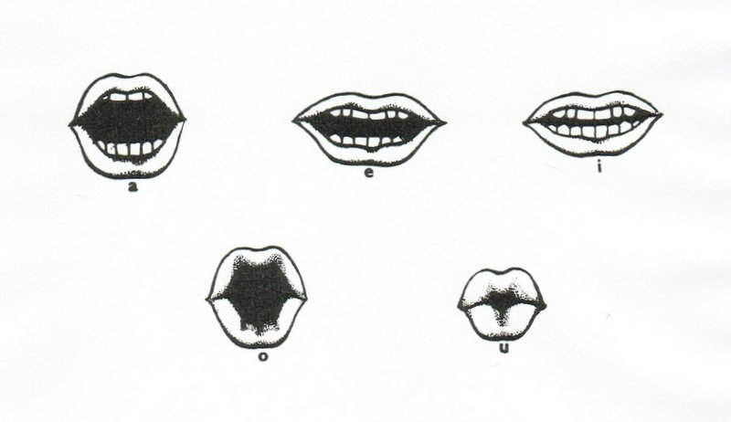 Pro správnou výslovnost samohlásek je typické postavení rtů a míra otevření úst, proto při nácviku výslovnosti dbáme na jejich přesnou polohu. Pro ještě lepší kontrolu můžeme použít zrcadlo.